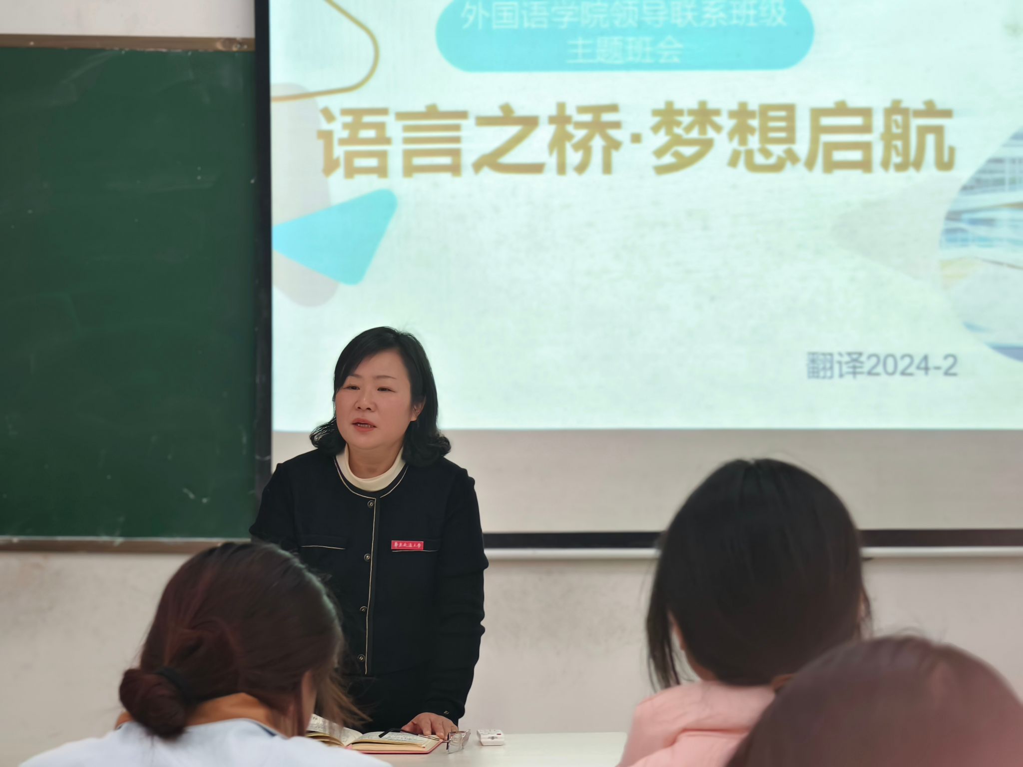 最后,陆院长对翻译2024-2班近三个月的表现给予了肯定,并对同学们提出建议与要求。陆院长指出,语言不仅是沟通的桥梁,还是追求真理的工具,“师夷长技以制夷”,它更是我们拓宽眼界、触碰世界的媒介。同学们要扎实自己的功底,勤勤恳恳、刻苦钻研,在日复一日的积累中不断充实自己,提高能力。其次,同学们要关注国际形势的动态变化,着眼于国家大事,向实现中华民族伟大复兴的目标行进,投身于祖国需要的地方。这需要我们更加广泛地学习与积累,不局限于眼前学科,学而不厌把自己培养成为复合型人才。此外,坚定学科自信,挖掘自身价值,做好职业规划,明确奋斗目标,笃志而好学。而后,陆院长对同学们的提问进行了答疑解惑。她以自己拜访昔日母校为例,向大家讲述求学回忆,指出应脚踏实地学习,提高交际能力,发挥语言魅力。