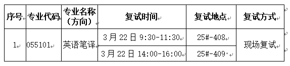 复试时间、地点及方式详见下表。