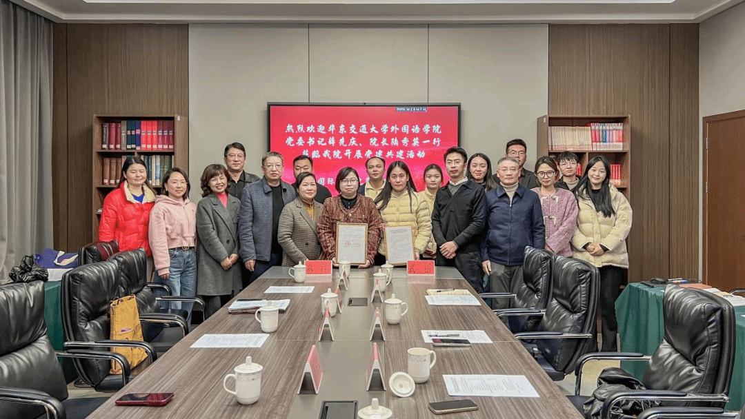 蒋诗文在欢迎辞中回顾了学校近年来在坚持党建引领、产教融合、协同育人等方面积累的宝贵经验,指出党建共建是双方立足新起点、开启新征程的战略选择。他强调,党建共建不是简单的“握手”,而是思想的交融、资源的共振、使命的共担。通过此次共建,两校党支部将携手并进,在党建引领下,推动外语教育与经贸人才培养的深度融合,书写校际合作新篇章。