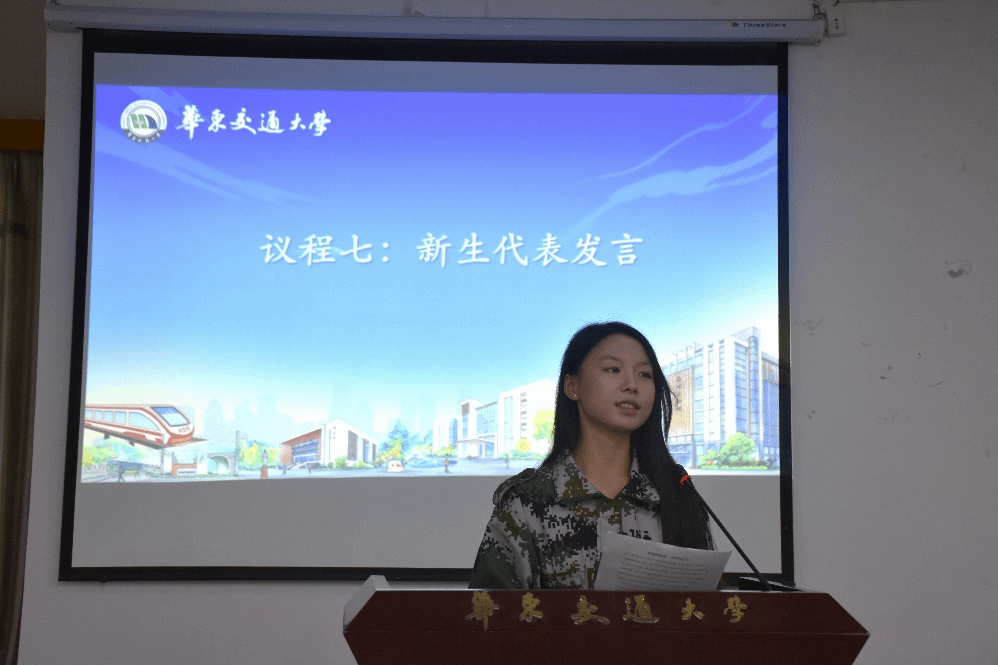新生代表2024级英语(国贸)2班刘雯婕同学发言。她以“聚璀璨星辰,点外院灯火”为主题,表达了对昔日刻苦学习的肯定以及对实现梦想的追求,引发广泛共鸣。