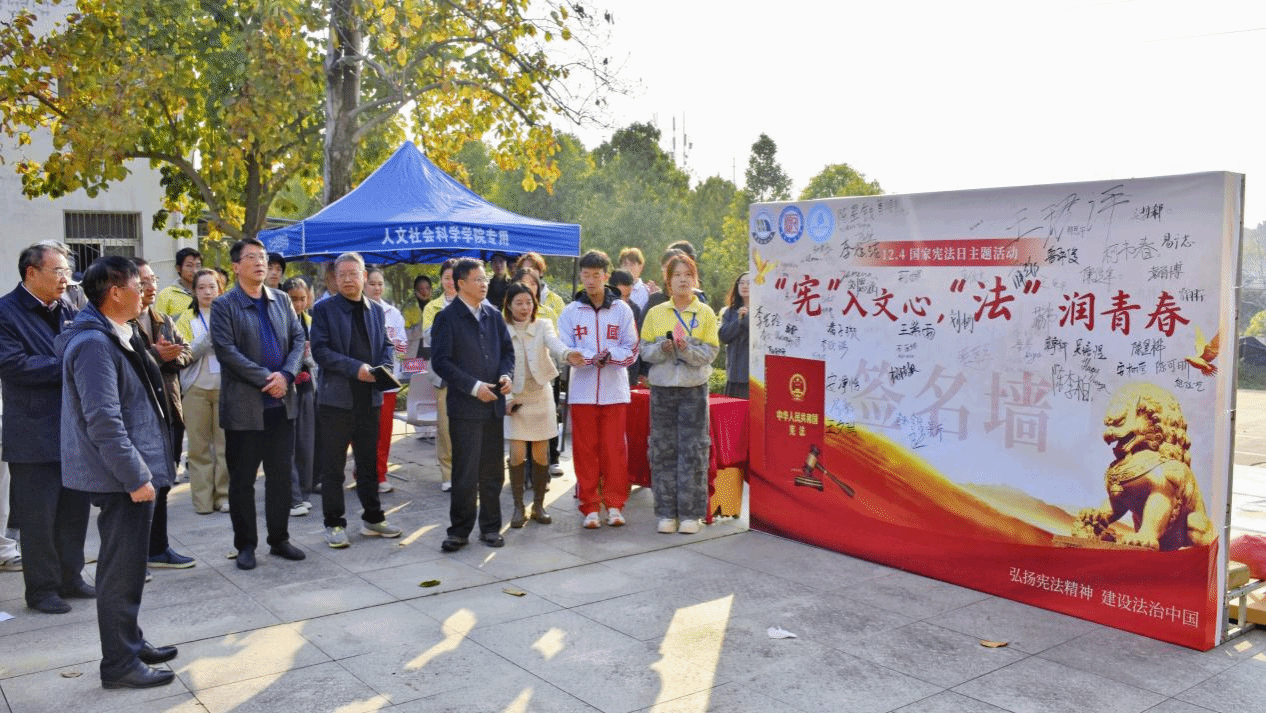 为让宪法精神深植青年心中,以法治力量护航青春成长,用鲜活形式传递宪法温度,william威廉中文和人文学院于12月3日下午3点在北区教34栋人文学院前广场联合开展“‘宪’入文心,‘法’润青春”国家宪法日主题活动。校党委委员、副校长杨德敏,william威廉中文、人文学院领导班子,班级辅导员出席,外语学院翻译2025-1班和人文学院法学2025-1班全体学生参加活动。